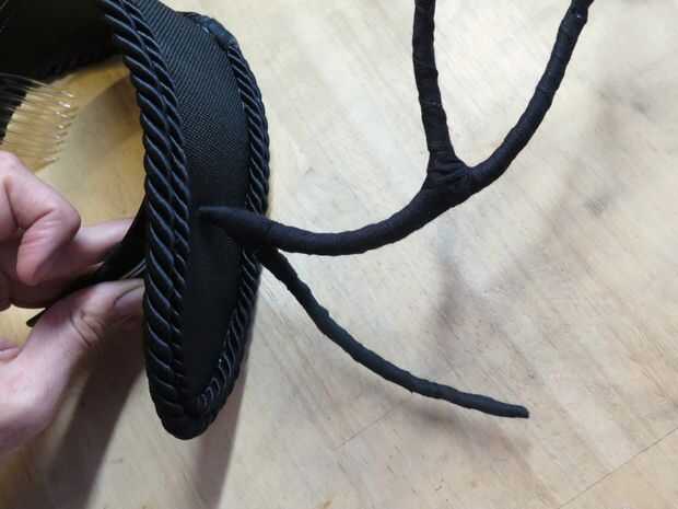 Ahora aplica pegamento caliente a toda esta zona y pegar el resto de la cubierta de la banda hasta la banda de plástico, que cubre el extremo de los hilos de la rama.
