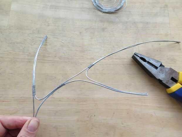 Unos 5" por tomar uno de los cables y doblar hacia fuera para crear un segundo tenedor 4" de largo. Donde esta rama bifurcaciones apagado desde el cable principal, envuélvalo con un pedazo del alambre más fino para mantener en su lugar.
