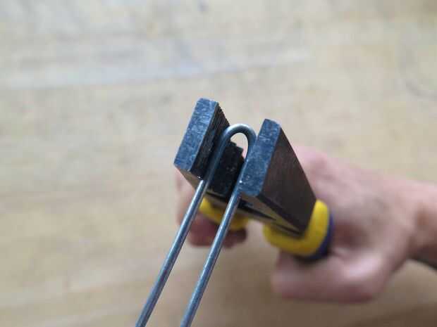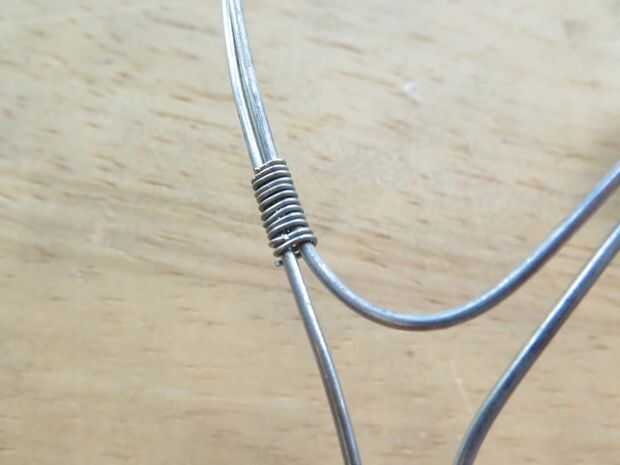 Otro 2 pulgadas hacia abajo crear un segundo tenedor 3 1/2" largo en el lado opuesto y seguro que con el alambre.