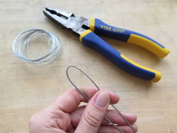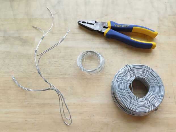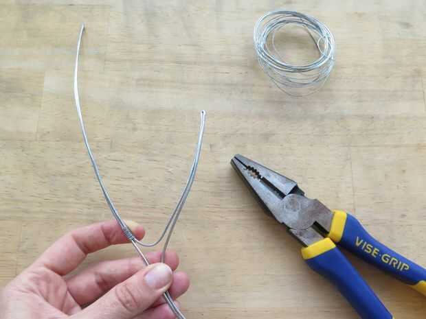 Corte una longitud de alambre de aproximadamente 50" de largo. Doblar por la mitad y doblar el extremo junto con sus plyers. Este es el final de la horquilla más larga de su rama.