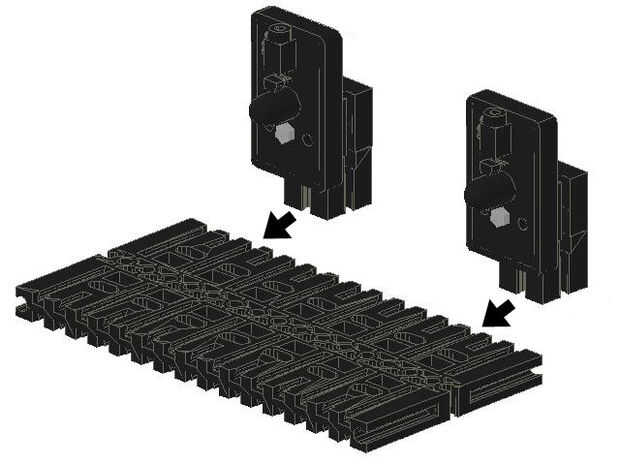 Fijar dos componentes LED bloque 15s con cajeado utilizando tuercas y tornillos. Deslice cada BB15 con cajeado en un bloque de construcción 15 e inserte las Asambleas en la tercera ranura de cada extremo de la placa base.