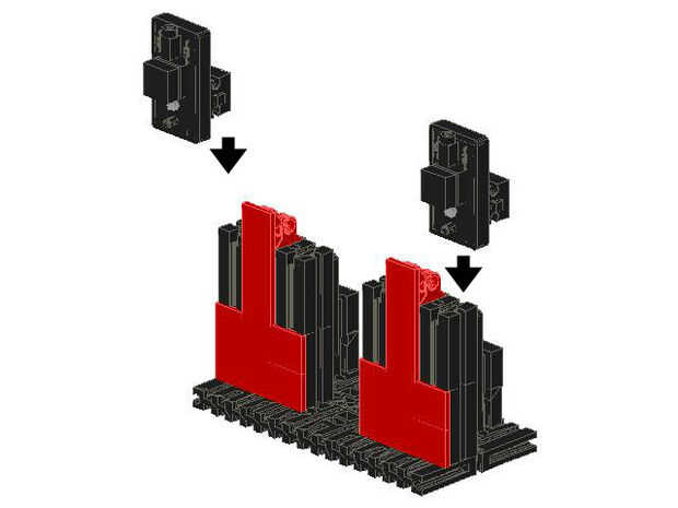 Fijar dos sensores de tacto en bloque de 15s con cajeado con tuercas y tornillos. Fijar un interruptor en la pila de bloque de la final en cada extremo del modelo.