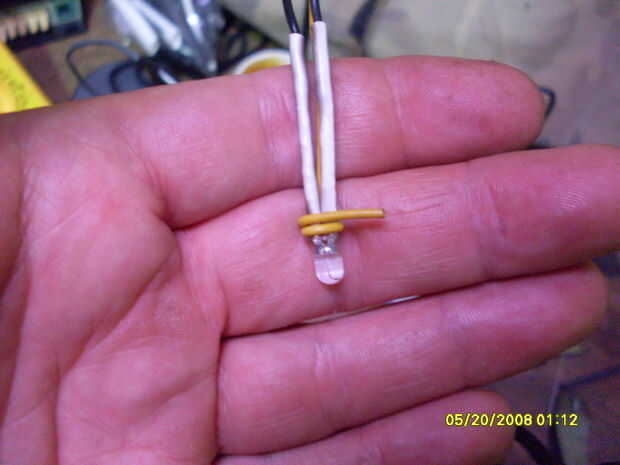 enrolle el cable sobrante 22ga. debajo de la base del LED para la fuerza. el alambre 22ga. hará que el LED más flexible y más fácil de apuntar a su trabajo.