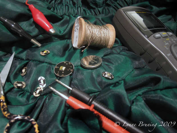 Que necesitaba mostrar a mis alumnos una manera simple de incorporar LEDs en un pedazo de tela, así que hice un tutu que enciende para arriba. Futuras versiones va a reaccionar al sonido, la luz o la aceleración. Pero para ahora, es simplemente activ