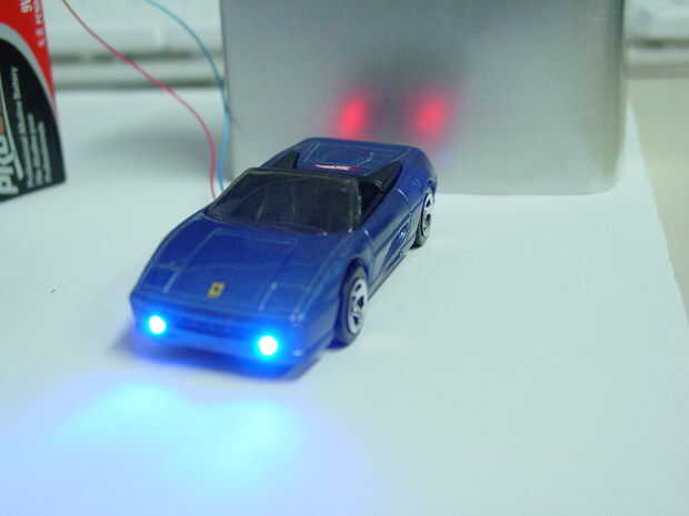 Después de mi primer Instructable, decidí hacer un coche de LED con alimentación a batería. Las luces de cabeza y cola son tan pequeñas que usando fuego plástico óptica era la única manera de ir, también la pequeña cantidad de espacio dentro del coch