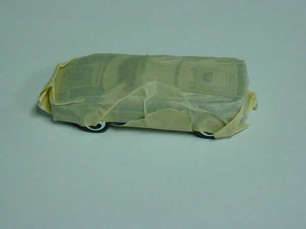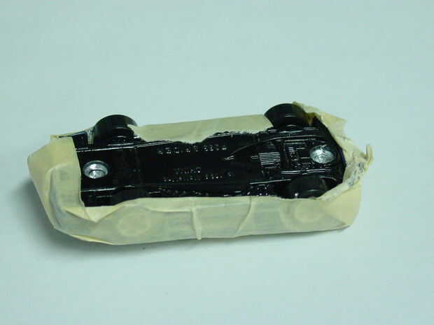 Continuación, utilizamos cinta adhesiva para cubrir el coche para que no raye todo.