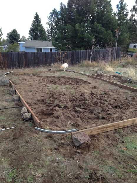 3. hacer el nivel. Este fue el paso difícil debido a la roca de la lava. Usé una manguera con agua para averiguar donde estaba y fijar la parte superior de todas las tablas en un nivel. Conducir algunas estacas de la tierra al lado de la madera para que rase y bajar la altura de la madera. Utilice tornillos o clavos para asegurar la madera a las estacas
