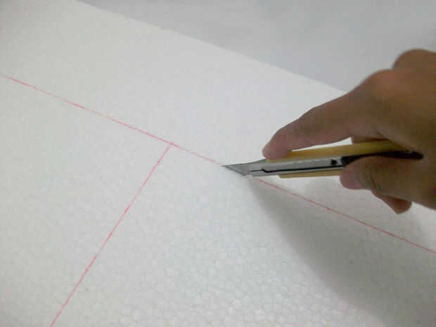 Como espuma de poliestireno es demasiado frágil, deben cortarse con un cuchillo afilado. Tratar de hacerlo bien y rápidamente. (ver imagen 3)