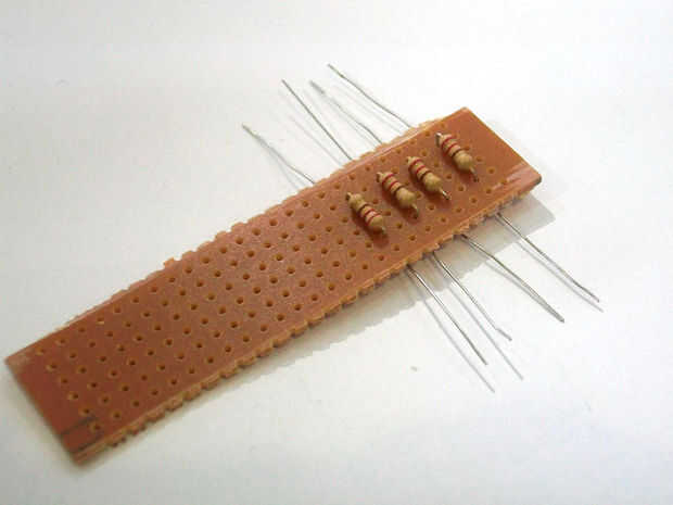 Organizar las resistencias en perfboard. Luego soldarlos a perfboard (ver imagen 2 y 3)