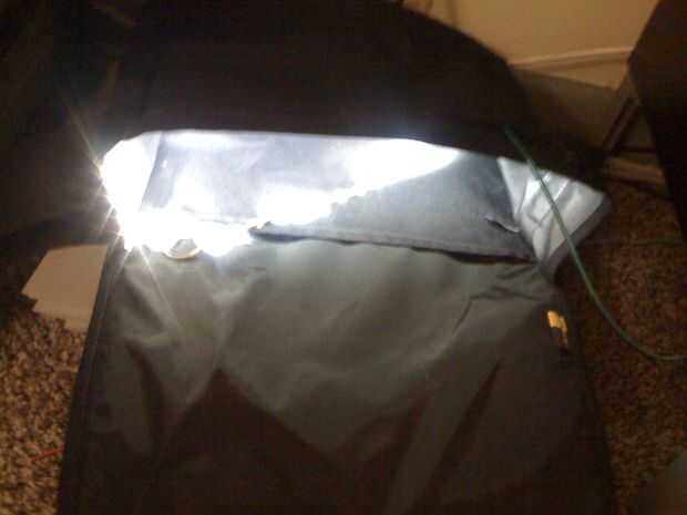 luces alrededor de la llanta y la batería y el interruptor de imán escondido en el bolsillo delantero.