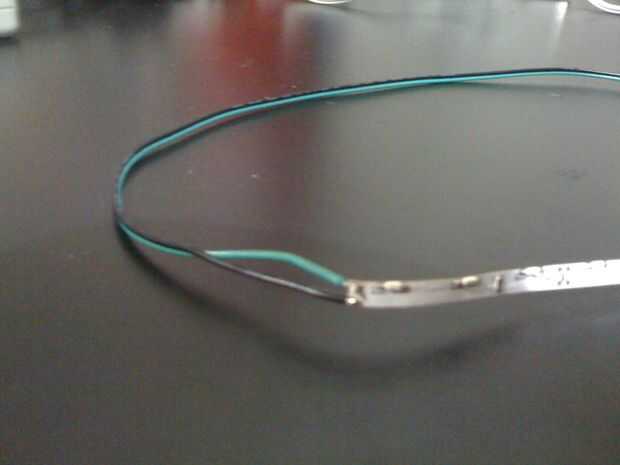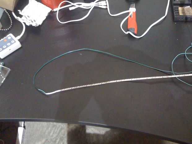 Luego soldar los cables a las luces y cosido en su lugar y corrió un alambre en el bolsillo delantero.