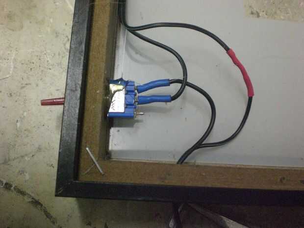 El segundo polo de la barra de LED para el Brad medio del interruptor de la soldadura y aislarlo con manguera de contracción en un tamaño más grande, el segundo polo de la fuente de alimentación se puede soldar a uno de los otros 2 clavitos del interruptor, no materia, aislante esta Brad demasiado y fije el interruptor con el pegamento caliente.