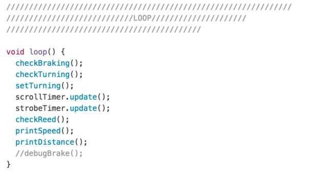 Puede que desee comentar varias funciones en el bucle del programa Arduino (por ejemplo el "checkBraking()" función si no crear la luz de freno).