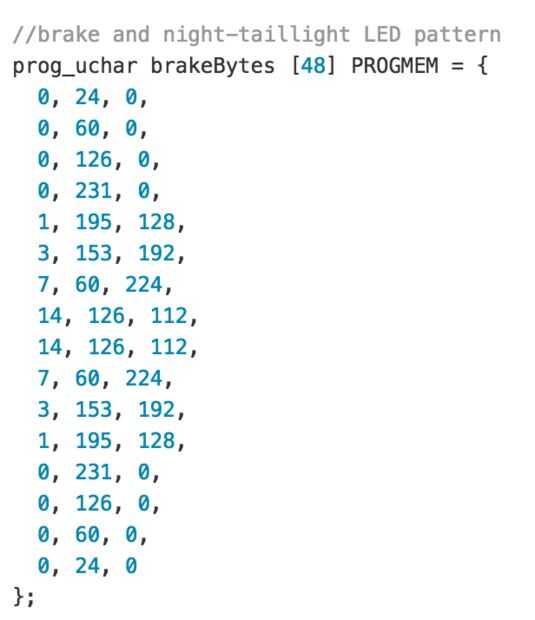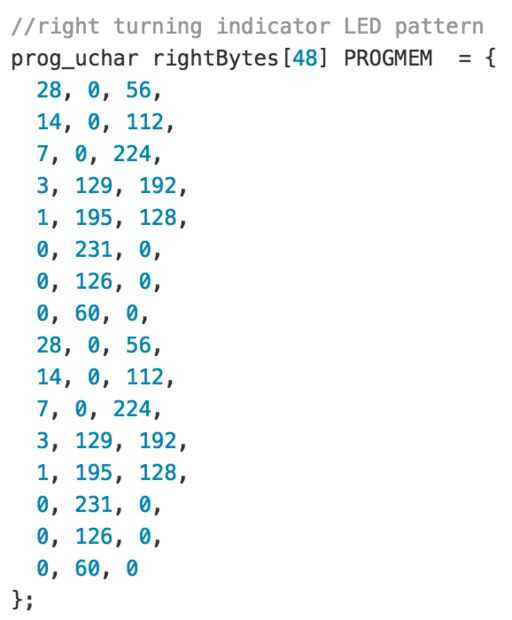 El código para el visualizador está en el mismo repositorio de Github. El visualizador es un esquema de procesamiento que hace más fácil a los patrones de diseño para convertir indicadores, luces de freno o luces estroboscópicas. El visualizador ha cambiado un poco en el video, pero el proceso sigue siendo el mismo: copia pega la salida impresa del esbozo del visualizador en la correspondiente matriz de valores en el código de Arduino (ver imágenes adjuntas).