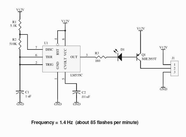 Dependiendo del tipo de componentes que usted elija, los valores de R y C pueden variar en un 10% o más, así que puede que necesite modificar algunos valores. C2 debe ser un casquillo de cerámica de puente, pero no parece ser esencial, mi circuito funcionaba bien con o sin C2. C1 debe ser una tapa de cerámica, pero si usted decide utilizar un tántalo o casquillo electrolítico para C1, asegúrese de que se instale en la polaridad correcta, o que podría explotar. Si tienes alguna duda sobre sus capacidades de la electrónica, entonces no debe construir este circuito.