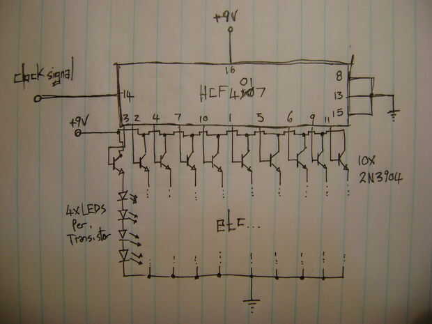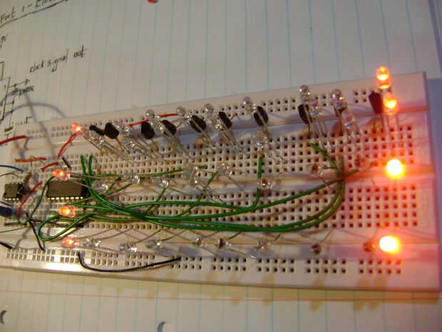Si los LEDs se encienden en orden semi aleatorio, que esté conectado a los pines incorrectos.