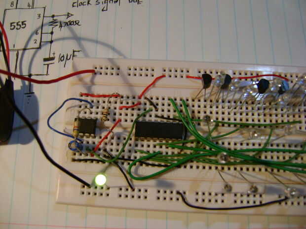 Montar el circuito en un protoboard, empezando por la parte del 555 temporizador.