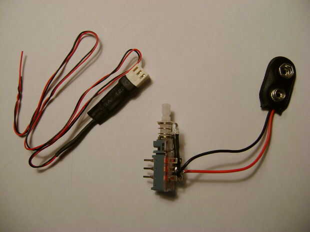 Cada uno de los cables de conector de batería a los contactos comunes del interruptor de la soldadura y soldar la parte LED paralelo sobre los contactos normalmente abiertos.