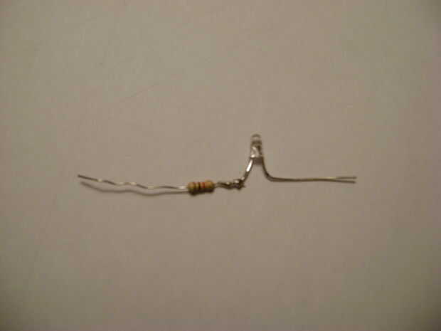 Soldar junto con la resistencia de 1 k y cubrir ambas piernas con termo retráctil.