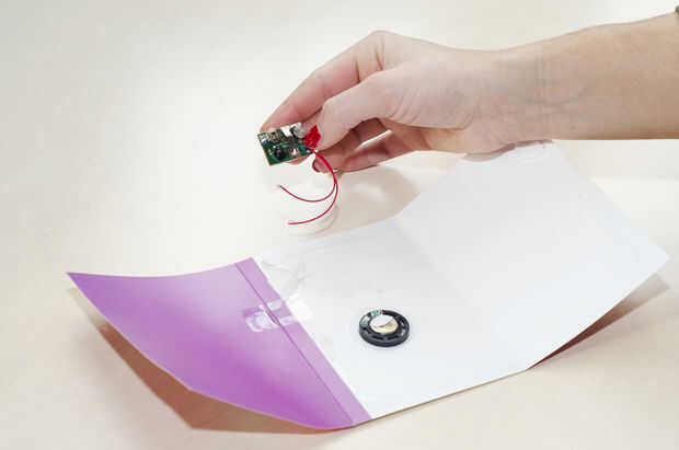 Abra la tarjeta que desea y retirar la viruta de los sonidos por el altavoz conectado.