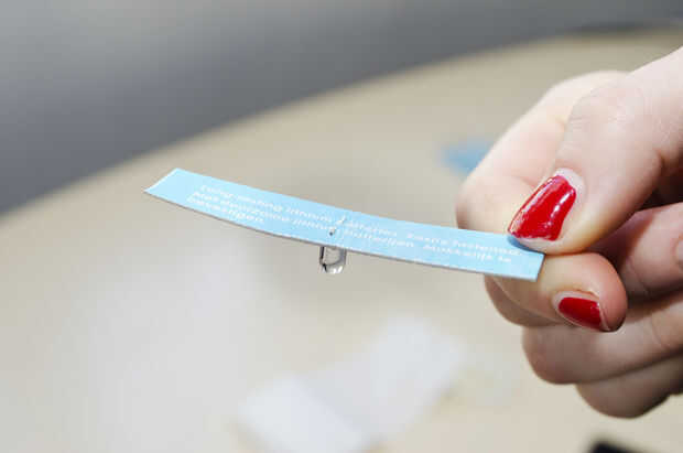Ahora dobla los pies sobre el cartón, asegurando que la luz se mantiene firmemente a la pieza de cartón. Tomar los pequeños cables de la viruta de los sonidos y doblar estos dos bajo los pies de la luz.