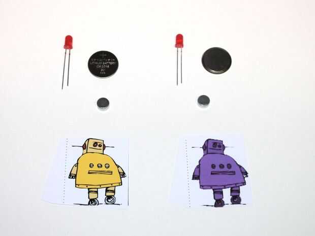 2 moneda de litio células entrega 3V. El tipo CR2016 fino es más fácil trabajar con, pero con cierta flexión de las patas del LED, pueden utilizarse para otros tipos.