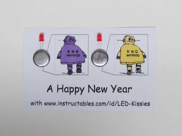 Un par de LED Kissies puede presentarse como una tarjeta de felicitación, con los imanes manteniendo los LEDs y baterías en su lugar y haciendo referencia a este Ible para instrucciones. Pero no simplemente por correo ensobrado, como los imanes están obligados a dar problemas en el camino.