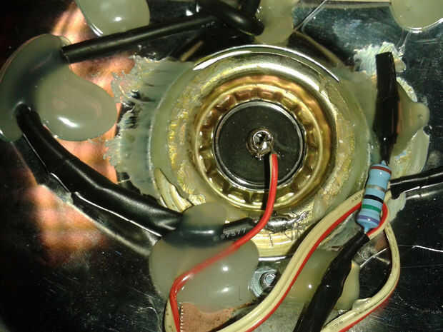 Positivo del adaptador se suelda al cuerpo del interruptor. Comprobar con ohmiómetro o continuidad probador que este switch cuando es accionado, hace y rompe el circuito. Un 7 a 10 ohm, 2 Watts, voltaje caída resistencia entonces es poner en serie con la alimentación positiva del adaptador y soldado al otro lado de la Asamblea de interruptor. La fuente negativa del adaptador se suelda directamente al cable negativo de la cabeza de la lámpara. Los cables son entonces sujeta con pegamento caliente del derretimiento. la resistencia es necesaria para los 5 voltios del adaptador a los 4,5 voltios requeridos por la cabeza de la lámpara de LED para que no se dañe por exceso de tensión. Doble Compruebe todas las conexiones eléctricas y enchufe la lámpara y asegúrese de que funciona antes de proceder al siguiente paso.