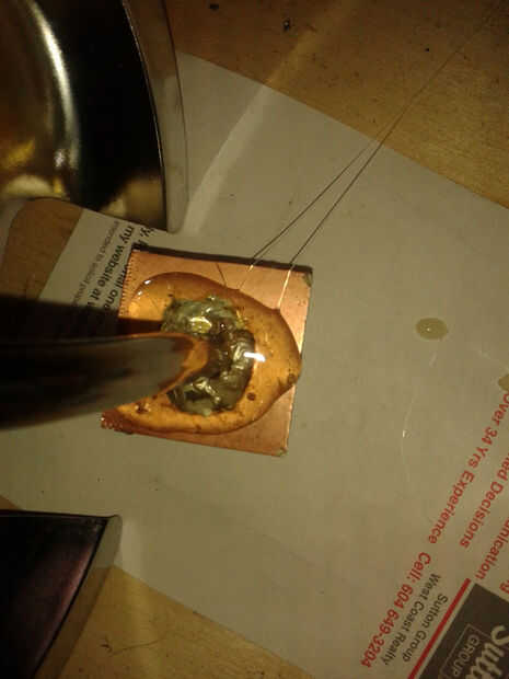 Soldadura final de línea de alimentación y circuitos con tuberías de la soldadura después de aplicar liberalmente flujo a Junta Directiva y dentro de la línea de suministro. Aplique pegamento caliente del derretimiento sobre conexión soldada.