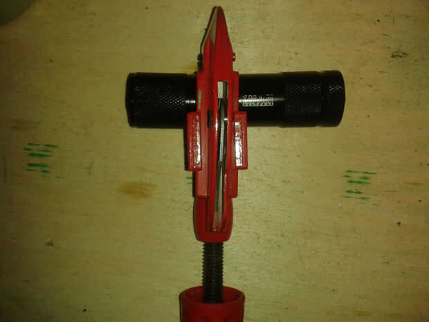Mini linterna debe tener fondo y caja de la batería y usando cortador de tubería, se debe cortar aproximadamente a medio camino.