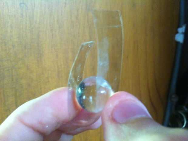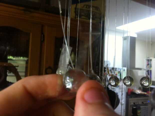 4. Coloque la fibra en el orificio y apriete la cinta para hacer una cuna pequeña en que secará el mármol. Las aletas deben "abrazar" a la fibra y despegar el peso y permitir que el pegamento se seque. Te recomiendo una segunda capa de cinta para evitar la alta probabilidad de la cinta suelta su agarre y el mármol cae.