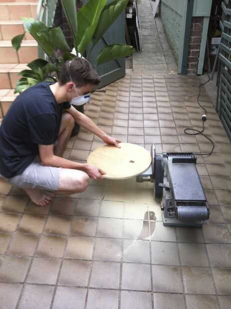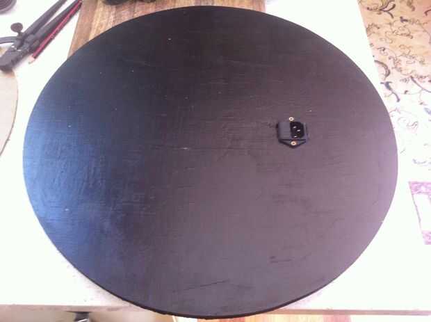 1. una brújula fue ampliada para que su longitud fue de 225mm (el radio de la base circular) y luego este círculo fue grabado en la madera.