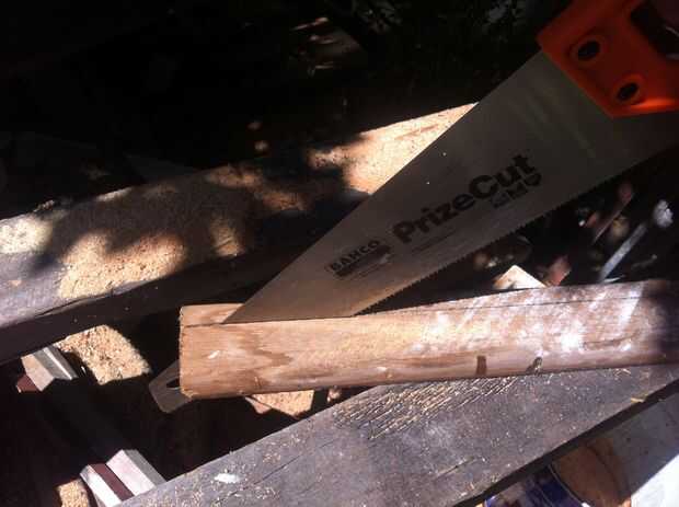 1. tomar un sobrante de la madera contrachapada y corte una tira con la sierra que es el mismo ancho que el espesor de la