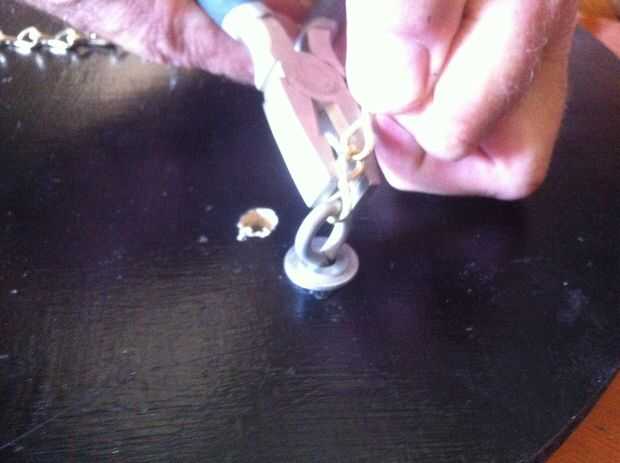 4. colocar el extremo de una pieza de la cadena en cada ojal