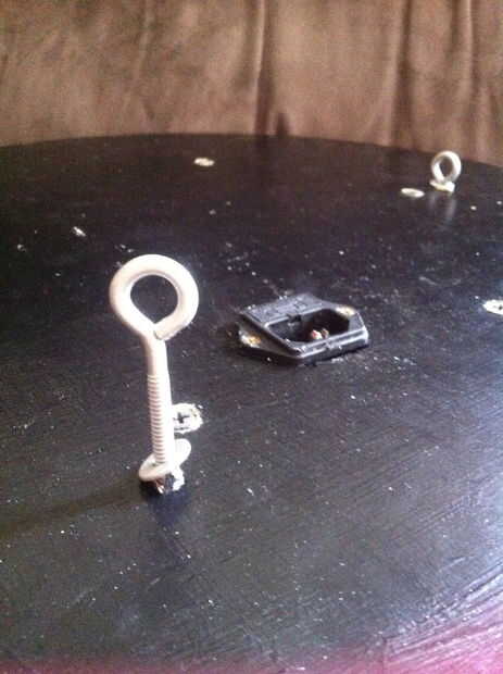 2. en la placa superior de madera, taladre agujeros piloto tres 20cm del centro. Estos puntos, si está conectado, deben crear un triángulo equiangular