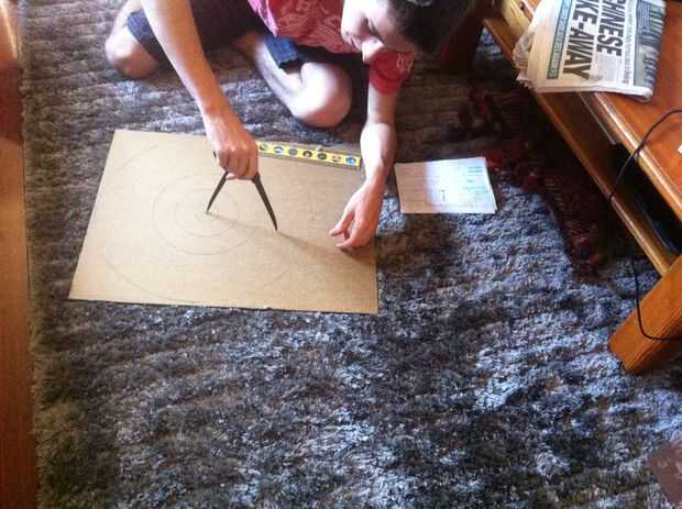 4. abrir el compás a 70mm (para hacer un círculo de 140mm), etch ligeramente, entonces aprovechar el círculo con lápiz