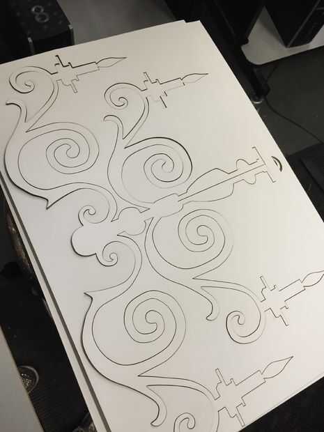 A continuación, corte láser. Alternativamente, si usted tiene una mano firme y notable paciencia, usted podría simplemente recórtalo utilizando la plantilla impresa como guía pegada a la parte superior de la lámpara.
