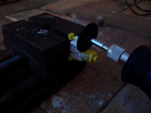 Primero necesitas cortar la cabeza de chicos de lego, usé mi herramienta rotatoria para hacer esto.