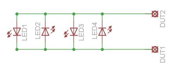 Primero me di cuenta de las propiedades del generador. Al conectar el LED con y sin resistencias serie que descubrí que la resistencia interna del generador era eficaz en la limitación de la corriente, así que no utilizo un resistor de la serie. También determiné que los LEDs son mejores en paralelo que en serie. Un alcance o demostró que el generador genera AC. Eso significaba un par de cosas, una es que la corriente inversa puede dañar el LED y el otro que el LED era sólo en la mitad del tiempo. Podía haber utilizado 4 diodos en un puente de onda completa, pero en vez de eso decidí usar 4 LEDs en paralelo 2 conectados en cada polaridad. Esto limita la tensión inversa y ahora 2 LEDs en todo el tiempo. También hice un pequeño jig para mantener los LEDs mientras que los soldados.