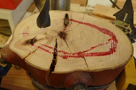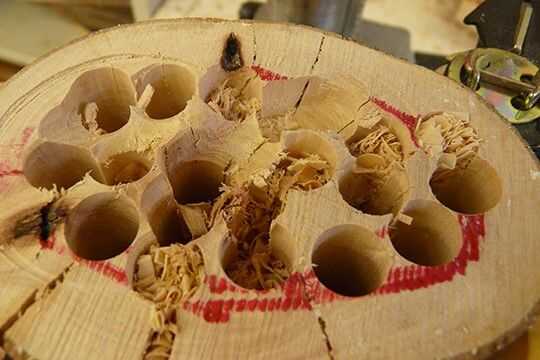 Así que de nuevo a la prensa del taladro, este vez que ajuste la profundidad de la prensa a 2 pulgadas y no preocuparse de guarnición hasta el centro, que es mucho más fácil de lo que fue la última tarea de perforación.