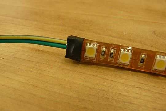 Para unir los conectores de tira de LED, use una tira de cinta aislante para celebrar todos juntos, asegurándose de no cubrir alguno de los LEDs en la tira.