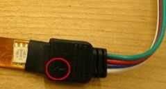Para lograr esto primero Conecte los conectores de tira de luz RGB para las tiras LED. En un lado de todos los conectores RGB, hay una pequeña flecha; esta flecha debe estar apuntando a la izquierda en la parte inferior de la tira de la luz. Ver la foto de referencia.