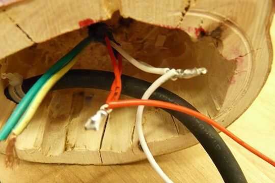 La primera vez que hice esta lámpara, cometí el error de soldar los alambres juntos antes de ponerlos realmente en la lámpara, así que no cometas mi error así. Inserte la tira de LED en el tubo de acrílico y tire los seis cables por la parte inferior del tubo y en la cavidad en la base inferior de la lámpara.