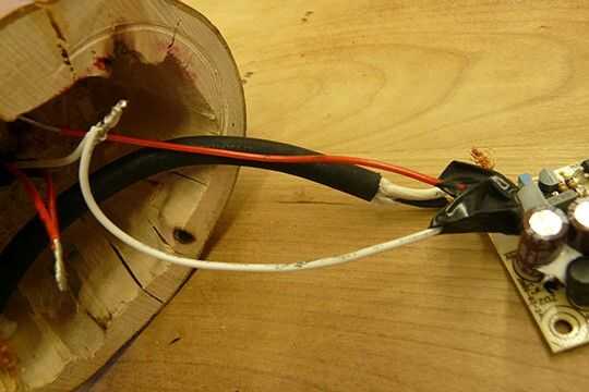 Ahora conecte las tiras de LED con el cable desde el inversor de corriente. En mi lámpara, yo había soldado rojo y blanco los cables para el inversor de corriente antes así que podría utilizar como referencia para este paso. Sin embargo, el color de los cables no importa, siempre y cuando se suelde correctamente consultando el diagrama de cableado. Por último, envolver las conexiones soldadas junto con alguna cinta aislante para evitar cortocircuitos.