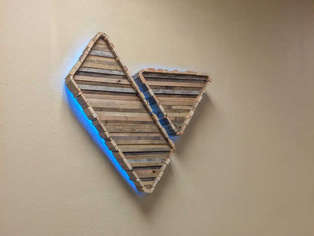Hice este cartel en una pared en una entrada de nuestro edificio. La madera es de palets viejos, una madera de desecho 2 x 4 y algunos. He desglosado varios palets durante las últimas semanas y hay todo tipo de especies de madera allí. Roble, álamo, pino y unos otros que los taninos de madera hechos para algunos cambios de color agradable después de intemperie. Es increíble qué tipo de especies de madera puedes encontrar en plataformas.