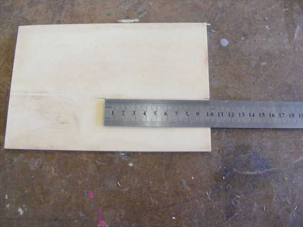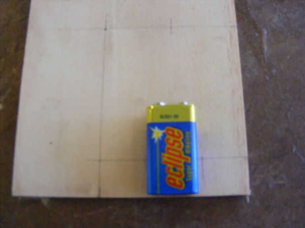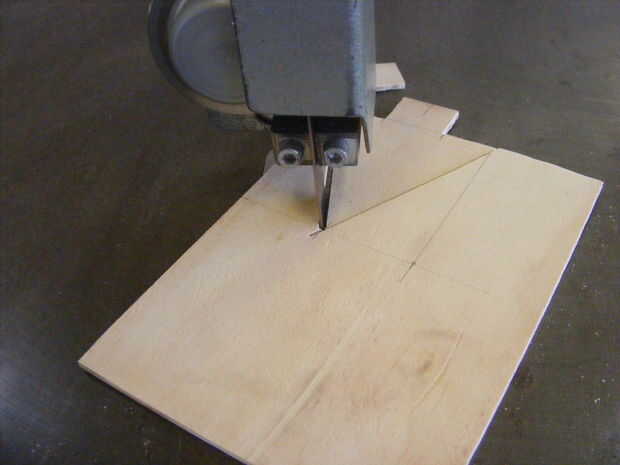 Una vez que ha medido la ply marcar en de cada lado una d 20 de la parte inferior. Esto deja @ 30 que es lo suficientemente amplia como para cubrir la batería. He utilizado una sierra de banda sino una sierra de marquetería o cualquier Sierra estaría bien.