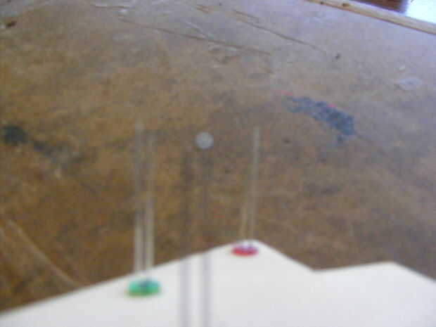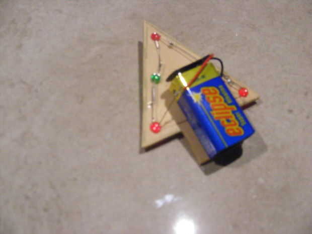 Utilicé 3 LED rojo y 2 verde para la Navidad siente pero los colores son de ti y de tu imaginación. Sólo les empuja en un ajuste agradable. Empuje con la annode + y cátodo - annode cátodo por lo que terminan con - + - + todo el camino alrededor del árbol y soldarlos juntos. Siempre toco el cierre de la batería antes de soldarlos como les llego a menudo alrededor de la manera incorrecta.