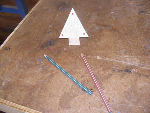 Utilizar lápices de colores para terminar el árbol y agregar color. Una vez que el árbol es juntos y trabajo caliente pegamento o utilice cinta de doble cara para sujetar la batería en la parte posterior que actúa como un soporte para el árbol.