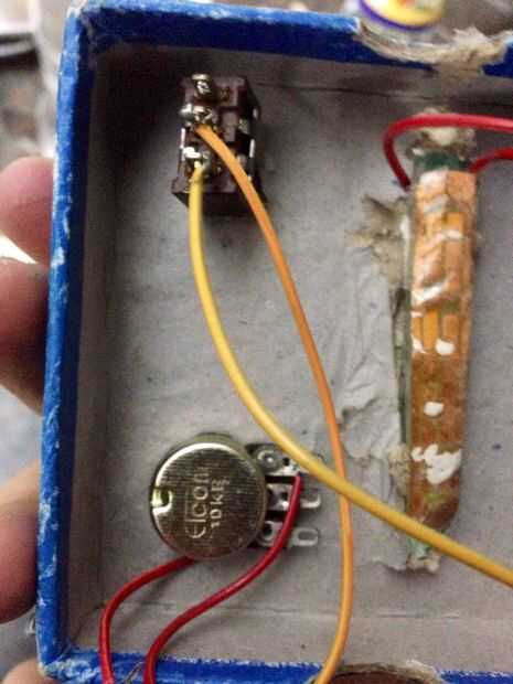 Ahora poner el potenciómetro e interruptor y conectarlos según el esquema.