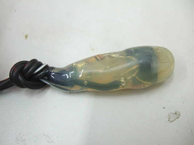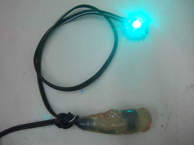 ahora probar el circuito mediante la aplicación de energía. Suponiendo que trabaja, basta para que sea duradero. una manera fácil es poner una gota grande de pegamento de silicona en todo el circuito. Esto hará que sea mecánicamente fuerte y resistente al agua. globalización justa en la silicona y haga un esfuerzo para eliminar cualquier burbuja de aire. llamar a este método: "BLOB-TRONICS". se parece mucho, pero funciona realmente bien y es barato y fácil.